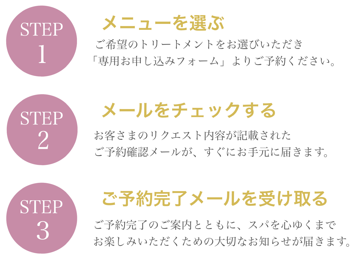 ご予約は、本日から5日以上先のご希望日より承ります。お客さまにゆっくりとおくつろぎいただくために、マンダラスパでは施設内のスペースを贅沢に使っています。そのため、限られたお客さまのみのトリートメントとさせていただいております。他のお客さまのご予約状況によっては、ご希望に沿うことができない場合があります。予めご了承いただき、お早めにお申し込みいただきますようお願いいたします。